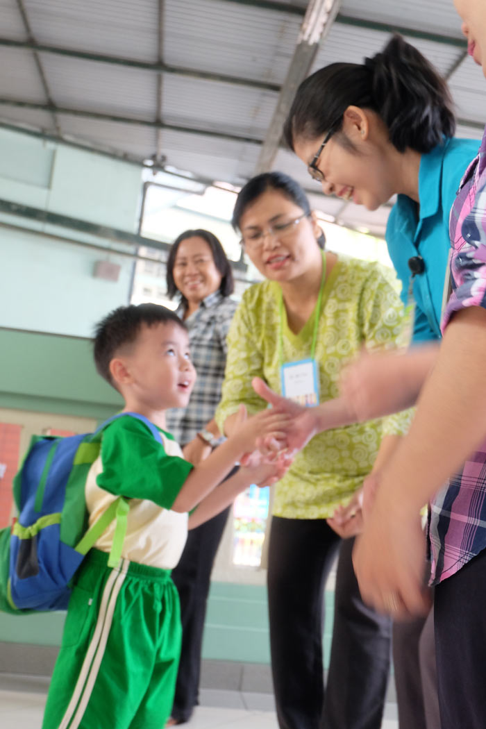Sebelum masuk kelas aku disambut oleh Ms. Ana, Ms. Tiur, Ms. Feli, dan Ms. Imel